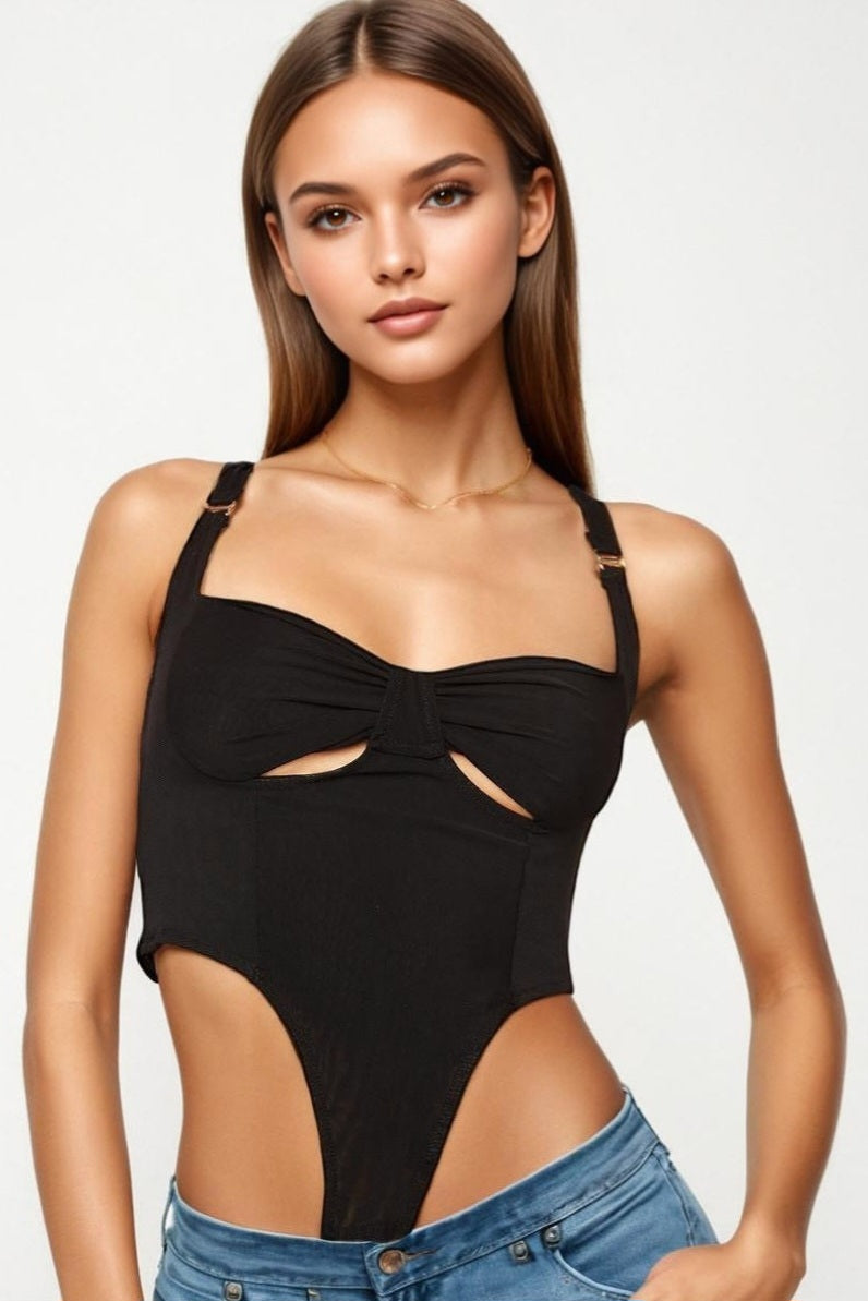 Semi-Sheer Mesh Cropped Cut-Out Cami Bustier Top